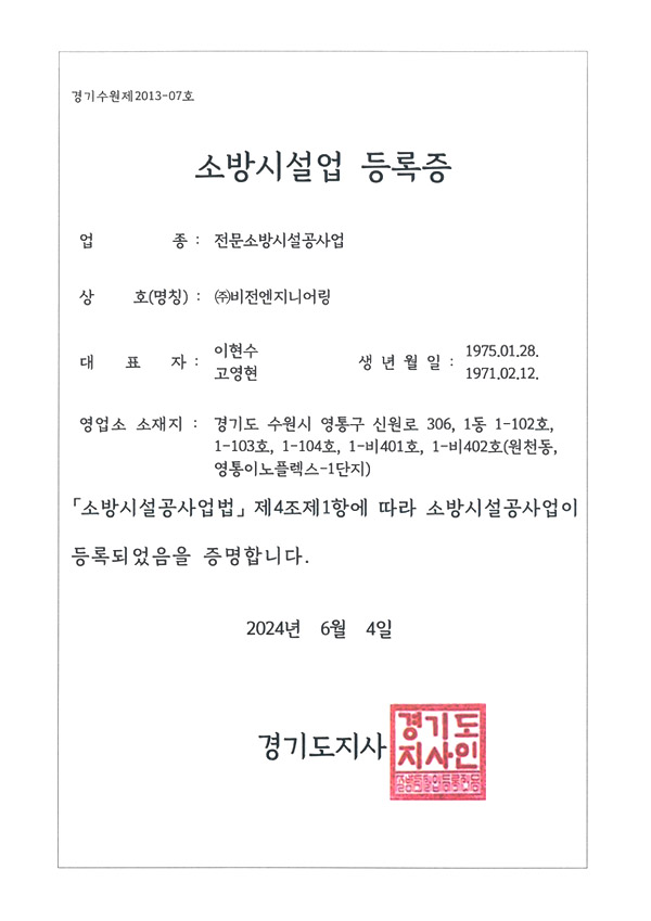 소방시설업등록증 전문소방시설공사업