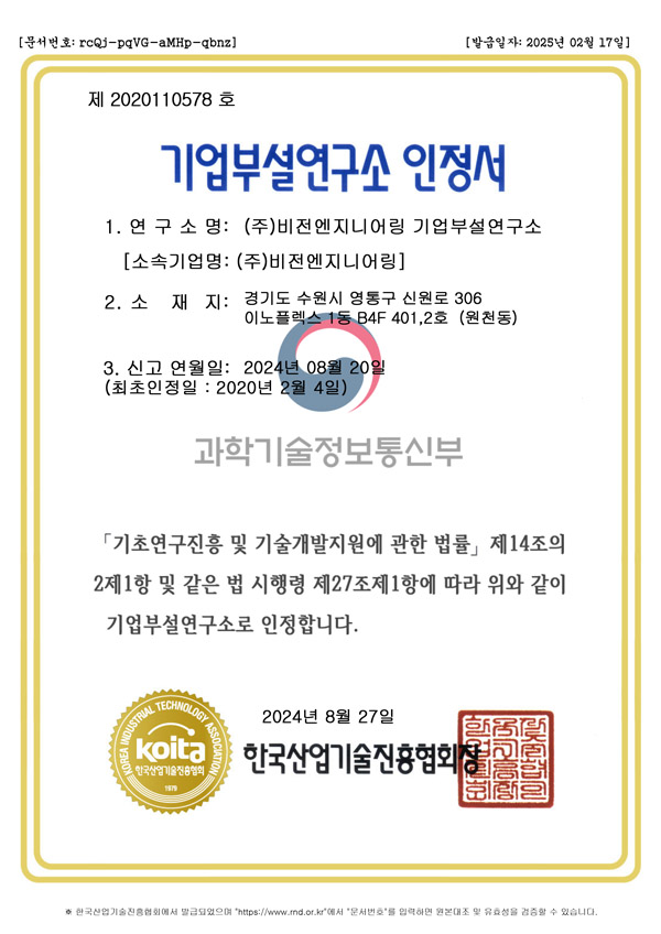 상호 : (주)비전엔지니어링      대표 : 이현수,고영현      사업자번호 : 135-86-31327